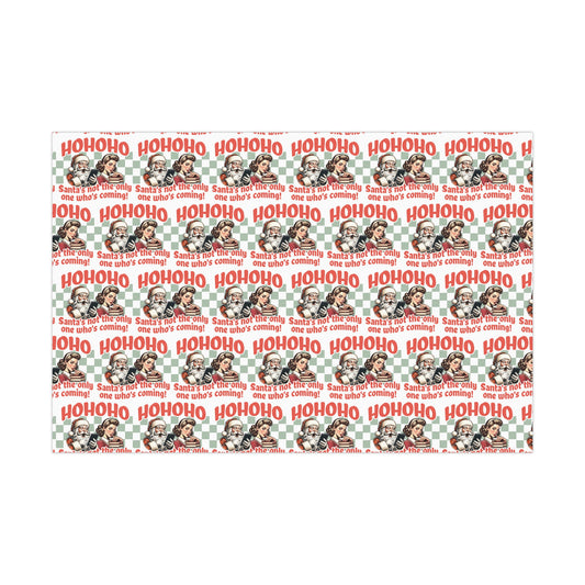 Funny Christmas Wrapping Paper for Readers of Romance Books with naughty bookish theme of Santa holding ereader behind Book Lover