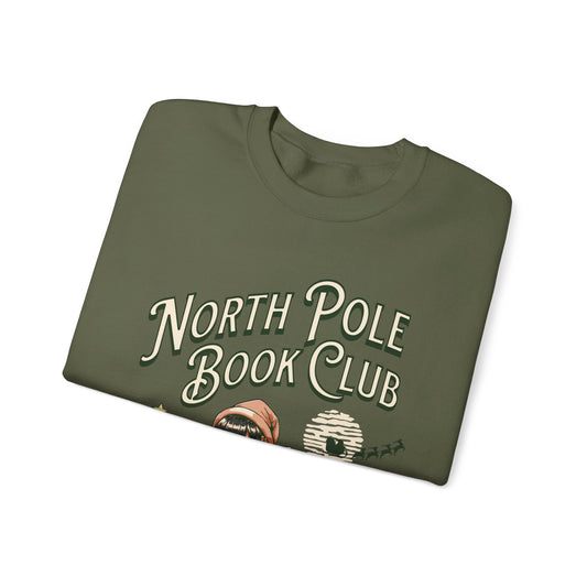 Army Green North Pole Book Club Crewneck with Coquette Elf, Cozy Holiday Sweater