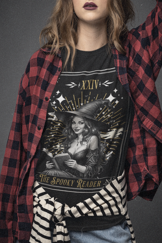 The Spooky Reader Halloween Witch T-Shirt for Book Lovers, Witchy Graphic Tee, Cozy Fall Reading Shirt