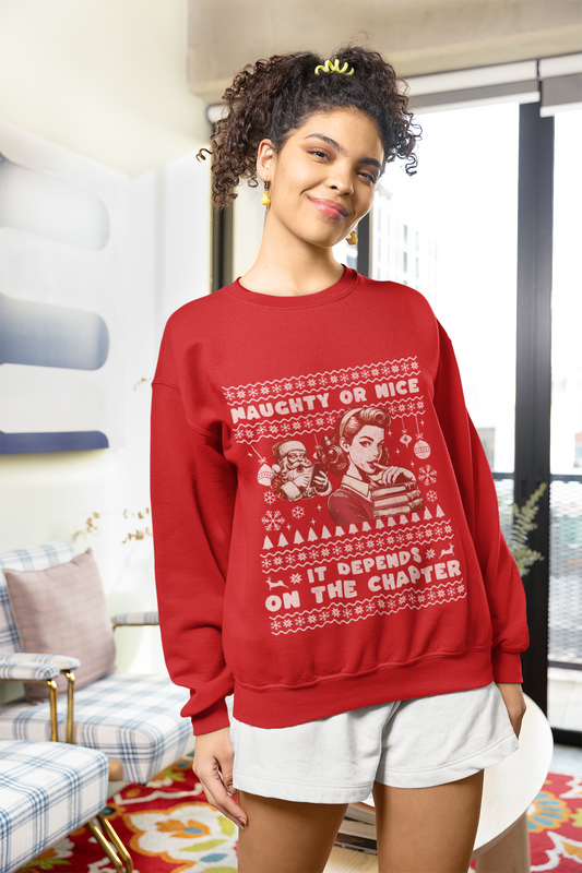 Vintage "Naughty or Nice" Christmas Crewneck Sweater – Holiday Humor with a Retro Twist, a perfect gift for the Romance Reader in your life