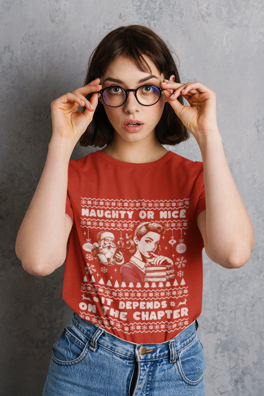 Naughty or Nice Vintage Reader T Shirt , Holiday Humor for Book Lovers