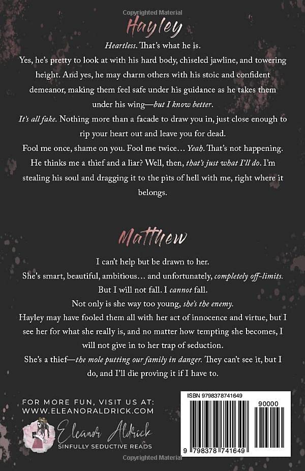 Hayley may have fooled them all with her act of innocence and virtue, but I see her for what she really is, and no matter how tempting she becomes, I will not give in to her trap of seduction.